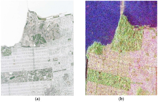 Land-cover and land-use classification are important parts of SAR image application [1,2,3]. According to the past studies, land surfaces can be more accurately classified from POLSAR image datasets. SAR image classification has become an important research issue since these images from RADARSAT-2, ALOS PALSAR, Terra SAR-X, and ENVISAT ASAR have been made available [4]. POLSAR images provide important information about the structures of objects. SAR images are widely used in land-cover classification due to their ability to monitor objects’ structures [5].