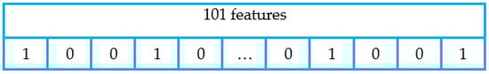 Figure 6 shows the formulation of the feature selection problem as a chimpanzee definition in the MOBChOA algorithm. Since there are 101 features in the SAR dataset, the chimp has an array of 101 features. In Figure 6, a feature value of 1 shows that this feature is used for classification.