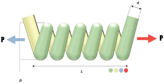The design of a tension spring is a complex problem that was used in this paper. A schematic view of the problem is shown in Figure 7 and can be formulated as Equations (13)–(18) [43]: