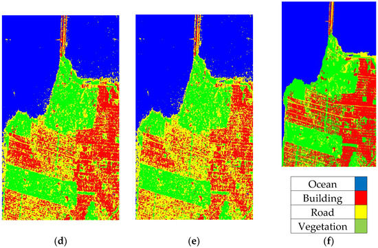These datasets were collected at 28 and 29.8° incidence angles for the near and far ranges, respectively. Moreover, the approximate spatial resolutions of these orientation were 11.1 and 10.5 m. The San Francisco dataset is one of the most widely used images in SAR image classification in the last decade [2] and includes both man-made and natural objects [2]. The POLSAR image of RADARSAT 2 was a single-look complex (SLC) image. We produced ground truth samples using a high-resolution image, a google earth image, a Pauli RGB image, and a 2006 national land-cover database (NLCD 2006). The pixel size of this dataset was 800 × 1400, which consisted of four main classes: ocean (in blue), vegetation (in green), building (in red), and road (in yellow). Artificial-intelligence-based algorithms must be contextualized in this context. Table 1 indicates the number of testing and training samples collected from high-resolution images from the Pauli RGB image and the 2006 national land-cover database.