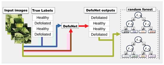 Overview of our approach. Images and the expert labels are used to train Defonet. Then, the same images are given to DefoNet to generate new labels. A random forest is trained with those images and DefoNet’s output.