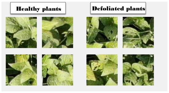 Example of images in the dataset. Images on the left are labeled healthy, while those on the right are labeled defoliated [].