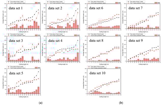 - The tool wear prediction result of the method proposed in this paper was 16.84 on average, and the maximum was a prediction error of less than or equal to 23.67; therefore, compared to previous studies, the performance improved by about 52% on average, and 34% on maximum prediction error.