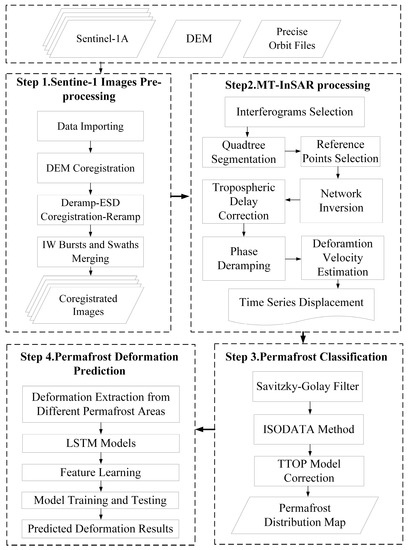 - Xu, Z.; Jiang, L.; Niu, F.; Guo, R.; Huang, R.; Zhou, Z.; Jiao, Z. Monitoring Regional-Scale Surface Deformation of the Continuous Permafrost in the Qinghai–Tibet Plateau with Time-Series InSAR Analysis. Remote Sens. 2022, 14, 2987. [Google Scholar] [CrossRef]