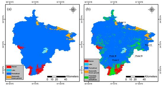 - Zhao, L. A New Map of Permafrost Distribution on the Tibetan Plateau; National Tibetan Plateau Data Cente: Beijing, China, 2019. [Google Scholar]