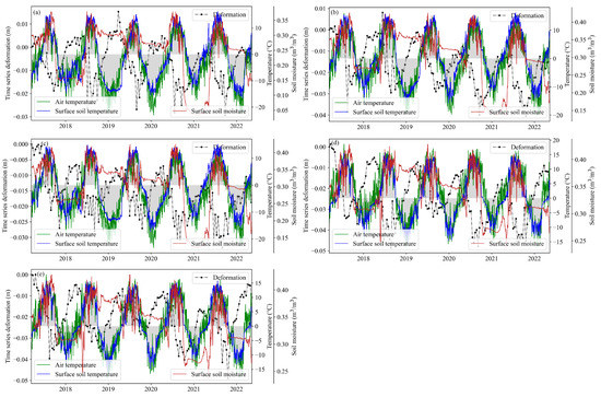 - Wang, J.; Wang, C.; Zhang, H.; Tang, Y.; Duan, W.; Dong, L. Freeze-Thaw Deformation Cycles and Temporal-Spatial Distribution of Permafrost along the Qinghai-Tibet Railway Using Multitrack InSAR Processing. Remote Sens. 2021, 13, 4744. [Google Scholar] [CrossRef]