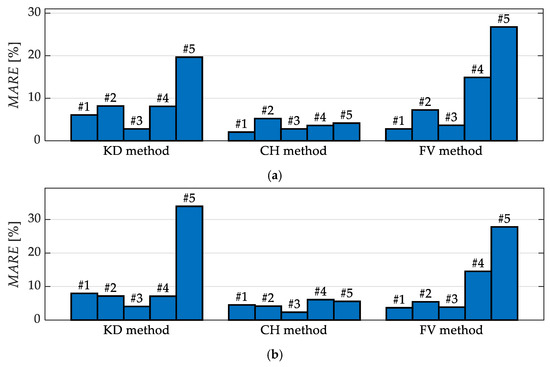 - the mean absolute value of the relative errors MARE, defined in the following way: