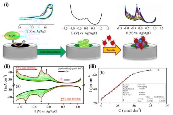 - Akyüz, D.; Keleş, T.; Biyiklioglu, Z.; Koca, A. Electrochemical Pesticide Sensors Based on Electropolymerized Metallophthalocyanines. J. Electroanal. Chem. 2017, 804, 53–63. [Google Scholar] [CrossRef]