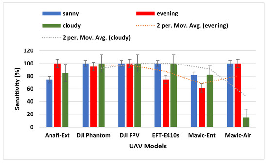 Furthermore, the latency of a model checks how quickly it responds to events (i.e., prediction time). By using the asynchronous execution method to measure delay, the results confirm that the ALIEN model outperformed other YOLO models with a latency value of 0.021s for both drone detection and conveyed object recognition.