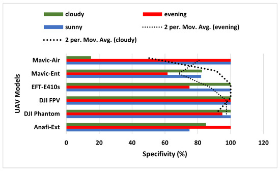 The other physical feature quantifier’s (q) estimation is dependent on the underlying detection technology deployed. Therefore, a malicious drone’s value can be a combination of weight/kinetic energy = k, noise level = n, loaded object = o, and scanability = s values as expressed in Equation (7).
