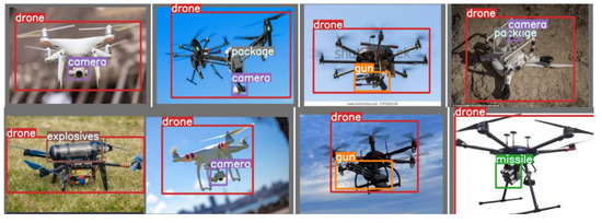An inappropriate sense of panic can be generated by the sight of a UAV with a strange object attached. As shown in the network diagram in Figure 7, simultaneous visual identification of a drone and the object it is conveying in a DTN is a challenging object detection task (an hard issue).