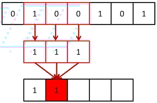 Concerning one-dimensional CNN, as the name implies, the convolution kernel is one-dimensional. The convolution kernel size of 1D CNN has the exact same dimension as the input data size. The calculation principle of the convolution operation is the same as that of 2D CNN. The difference is that the convolution kernel only has one moving direction. According to the intuitive analysis from the sliding window, the one-dimensional convolution kernel slides along the data length direction, extracting signal features quickly and accurately, as shown in Figure 3.