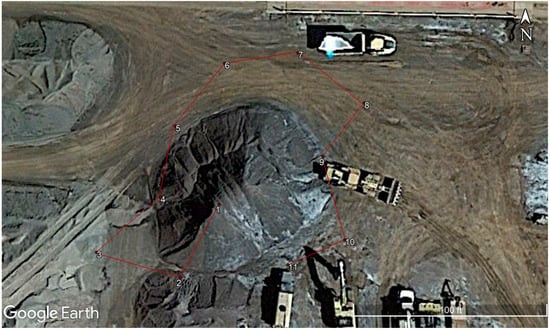 Positions of the drone during capture starting from point 1 till point 11 (Map data ©2023, reproduced with permission from Google, 2023).