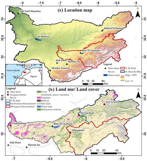 (a) Geographic situation of the Oued El Abid catchment. (b) Land use/land cover map.