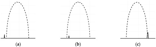 Let us find rules for calculation (30), defining such ER between sinograms that are presented in Figure 3. Here, small spiking sinograms (continue lines) correspond to relatively small basis squares and oval-type sinograms (dashed lines) correspond to ellipse figure (see Section 4.3).