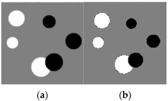 Equation (15) was tested in [28] when solving the problem of reconstruction of the shape of plane figures, processing its ER data with basis figures (Figures 4–6 in [28]). It turned out that (15) gives uncertainty in the form of a blurred boundary. However, it is possible to eliminate it if to apply additional rules, correcting ER in (15):