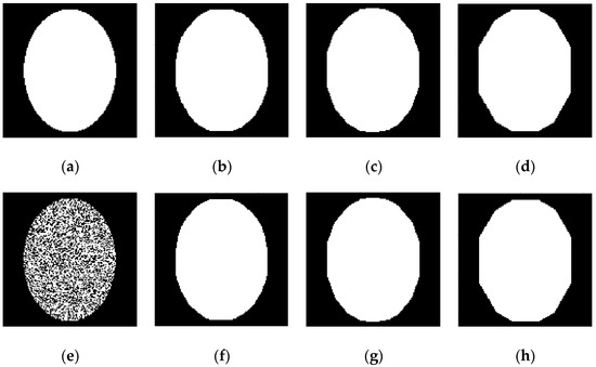 - Klette, R.; Rosenfeld, A. Digital Geometry: Geometric Methods for Digital Picture Analysis; Elsevier, Morgan Kaufmann Publishers: San Francisco, CA, USA, 2004; Chapters 4–5. [Google Scholar]