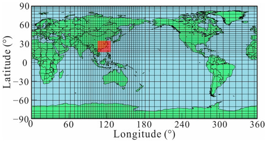 The initial model of our 3D L1-norm inversion adopted the 1D model in Figure 3. To match the major mineral phase transitions in the mantle, the conductivity was allowed to jump at 410 km, 520 km, and 670 km. A heterogeneous grid was densified with a fineness of 3° × 3° horizontally to discretize the model in the research area, and the size of the cell increased gradually outside the area (as shown in Figure 5). To eliminate the OIEs, a lateral grid of 1° × 1° of the surface layer with a thickness of 12.65 km was considered to more precisely describe the distribution of the sea and continent to generate the shell in 3° × 3° for calculation and ensure OIEs were accounted for with sufficient accuracy [28].