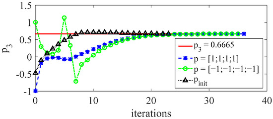 It can be seen from Figure 10 that for different initial values of model parameters, the algorithm can guarantee the convergence to the real model parameters. When is used as the initial model value, the convergence speed is the fastest. After the 12th iteration, it has almost converged to the real model parameters and satisfies the tolerance. However, under the other initial values, at least 20 iterations are required to meet the tolerance. This indicates that the establishment of an accurate initial values of model parameters can speed up the convergence of the control algorithm and reduce the amount of iterative learning.