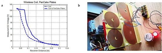 To demonstrate the increased efficiency of wireless power transfer using both the electric and magnetic fields [4,38], measurements were conducted by using four configurations (Figure 5):