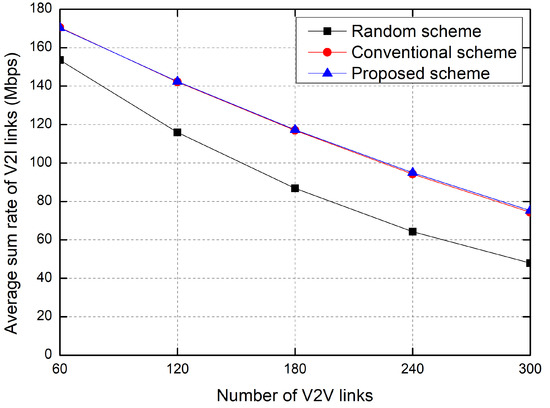 Average sum rate of V2V links.