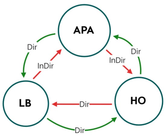 The aforementioned issues cause complications concerning load balancing (LB), AP assignment (APA), and handover (HO) problems [6,9]. According to the results of prior studies, all three of these issues are linked in some way (see Figure 1). Figure 1 depicts the kind of cause and effect (CE) between the three components (LB, APA, and HO) shown in the figure. Specifically, there are two types of CEs: the first one is called a direct one, while the other one is indirect. The direct CE refers to a variable or a value-related aspect that belongs to a certain factor which could trigger another event. For example, when an HO occurs, it causes a direct need for the APA procedure as well as the LB. On the other hand, when using one of the LB techniques, an indirect effect caused by related aspects (such as data rates, user data-rate requirements, or resource allocation) might take place that could trigger an indirect APA demand depending on the system configurations. When a direct CE happens, a decision must be made for the receiving factor event, whereas when the indirect CE occurs, the CU does not need to take an action or a decision. The LB distributes the network’s workload evenly among all connected devices.