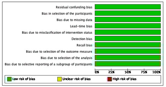 Residual confounding bias: review authors’ judgments about each risk of bias item presented as percentages across all included studies.