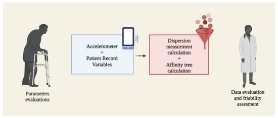 Building on Dai et al.’s [25] work in 2010, Fontecha J.N. et al. [26] in 2013 described a mobile system for detecting and diagnosing frailty in healthcare settings. This system incorporated an accelerometer-enabled smartphone (SP) to collect movement data for two basic gait and balance tests, as an extension of Dai et al.’s PerFallId platform for pervasive fall detection using mobile phones.