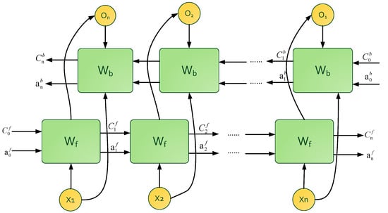BiLSTM uses a layer of bidirectional LSTM to extract the features of the hidden layer, and directly selects the 256-dimensional feature outputs of the hidden layer for batch normalization []. By normalizing the output of the previous layer, the internal covariance drift in the feature graph can be reduced, and the regularization effect caused can reduce the overfitting. Then, a full connection layer is used to down sample the input features and reduce the dimension of feature space. Finally, the prediction results are obtained after the softmax activation layer. The optimizer selects “Adam”. The fixed learning rate is set to 0.001, and the loss function is cross-entropy. In order to prevent overfitting, the neurons are randomly disconnected with a probability of 0.5 every time the parameters are changed in the training process. In the process of training and testing, five-fold cross-validation is adopted, with 80% of the dataset used as training data and 20% as test data. The structure of BiLSTM is shown in Figure 4.