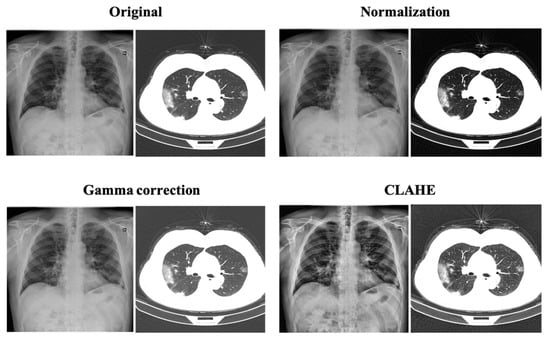 - Kanjanasurat, I.; Domepananakorn, N.; Archevapanich, T.; Purahong, B. Comparison of image enhancement techniques and CNN models for COVID-19 classification using chest x-rays images. In Proceedings of the International Conference on Engineering, Applied Sciences, and Technology (ICEAST), Chiang Mai, Thailand, 8–10 June 2022; pp. 6–9. [Google Scholar] [CrossRef]
