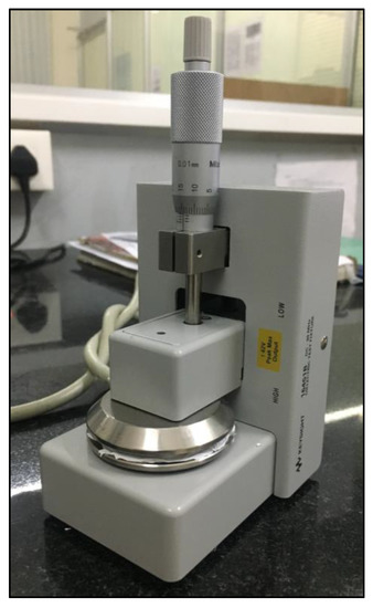 The experiment was performed at 40 °C at the frequency range of 1 Hz–10 Hz with 2% torsion mode. The piezoelectric test of the developed samples (diameter 3.8 cm) was carried out at a cam machine (in-house developed [31] for 100 cycles at an offset angle of 20°). In the mechano–electrical study, the load vs. voltage response piezoelectric test was performed at 40 N, 60 N and 80 N for 500 cycles in Motorized Tension/Compression Test Stand force gauge (model ESM303, manufacturer MARK 10, Copiague, NY, USA) and voltage response was simultaneously collected through the digital storage oscilloscope (DSO, model DSO1012A, manufacturer Agilent Technologies, Santa Clara, CA, USA).