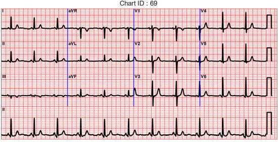 - Strauss, D.G.; Schocken, D.; Wagner, G.S. Marriott’s Practical Electrocardiography, 13th ed.; Wolters Kluwer: Philadelphia, PA, USA, 2021; p. 515. [Google Scholar]