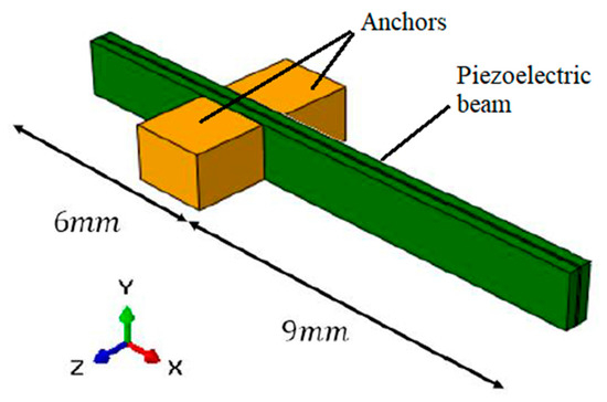 The finite element model contains three-dimensional finite elements both for silicon and the piezoelectric material. Fully coupled dynamic analyses were carried out. It is important to point out that mechanical damping is introduced to represent a typical value of the mechanical quality factor for the entire device QM = 500 [1]. This value can be reached in a standard manufacturing process for MEMS, which requires a controlled environment. As a matter of fact, the mechanical quality factor influences the electromechanical transduction ability [45]; thus, different values could change the output power but not the overall qualitative behaviour. It is possible to obtain the damping ratio for a lumped parameter model starting from the quality factor as: