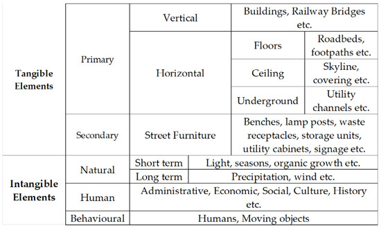 Tangible and Intangible Elements of a Street (adapted and extended from [16,20]).