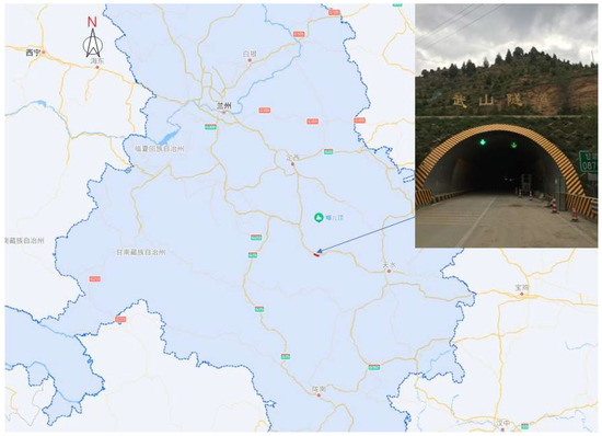 The Wushan Tunnel, located at the southeast part of Gansu Province, is an important part of the Tianshui to Dingxi section of the National Highway G30, as shown in Figure 1. The upper line of the tunnel is 2.5 km long, with a maximum depth of 270 m. The tunnel mainly passes through the surrounding rock of grade Ⅳ and Ⅴ, and the engineering geological conditions are quite complex. As shown in Figure 2, the secondary lining prototype section of the tunnel is a two-lane four-center circle. The section size of the lining is 1186 cm wide, 963 cm high, 50 cm thick concrete equal section structure. The lining section is symmetrical left and right, so only the radius and radian of arcs on the right side of the section are marked in the figure. According to the inspection, there are 57 voids behind the secondary lining of the upper tunnel, with a cumulative length of 244.0 m, accounting for 9.8% of the total length.