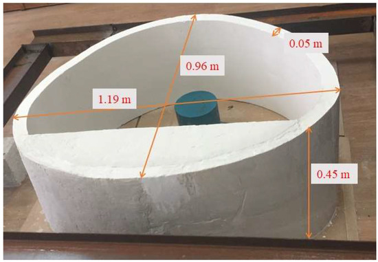 As shown in Figure 3, the lining was prefabricated in a mold and maintained under certain temperature and humidity conditions after demolding. All reduced model section sizes were 1/10 of the prototype according to Figure 2; that is, the model geometry size was 1/10 of the prototype. The lining section and the thickness of the lining model was set as 0.05 m, the span was 1.19 m, the height was 0.96 m, and the axial length was 0.45 m.