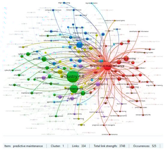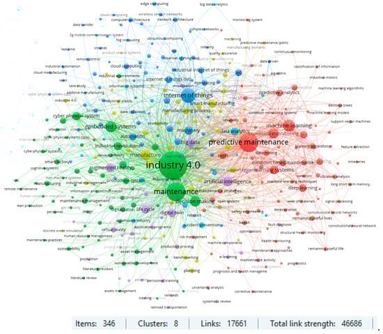 Bibliometrics is a branch of scientometrics that uses mathematical and statistical methods to assess scientific activities’ performance. The bibliometric analysis allows us to study the networks formed around the most representative keywords and presents how citations, scholars, affiliations, counties, and publications indicate the importance of specific topics in the field of research. At the same time, we can see a noticeable increase in interest in bibliometric studies in science (see, e.g., [95,96,97,98]). As a result, the analysis’s objective is to identify the main trends in Maintenance 4.0 research through bibliometric analysis.