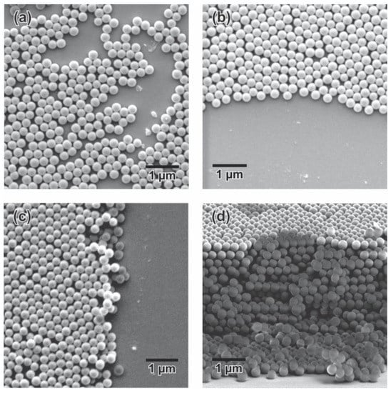 - Vogel, N.; Retsch, M.; Fustin, C.A.; Del Campo, A.; Jonas, U. Advances in Colloidal Assembly: The Design of Structure and Hierarchy in Two and Three Dimensions. Chem. Rev. 2015, 115, 6265–6311. [Google Scholar] [CrossRef] [PubMed]