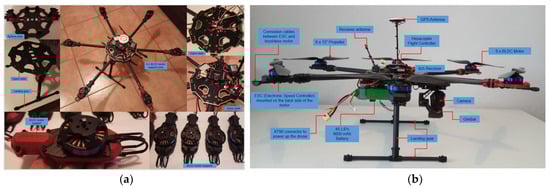 - Setiono, F.Y.; Candrasaputra, A.; Prasetyo, T.B.; Santoso, K.L.B. Designing and Implementation of Autonomous Hexacopter as Unmanned Aerial Vehicle. In Proceedings of the 8th International Conference on Information Technology and Electrical Engineering (ICITEE), Yogyakarta, Indonesia, 5–6 October 2016; pp. 1–5. [Google Scholar] [CrossRef]