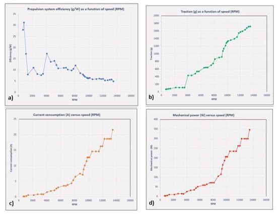 Budinger et al. [53] present several models to estimate the performances of the main components of multirotor drones with electric propulsion. The mathematical models described in the paper facilitate the employment of design and optimisation tools. Using the current available technologies, these models can be employed for the preliminary design of new sensor systems. Alternate developing methods were utilized to find an analytical model built on datasheet records (propellers) and on FEM simulations records (landing gear). Thus, the dimensional assessment simplifies the selection of the primary individual parameters and increases the assessment of the models.