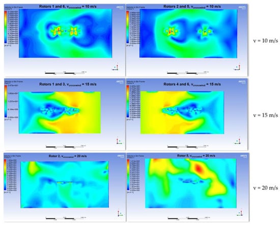 In conclusion, many FEM simulation attempts have been reported on hexacopters, but the most interesting results for this type of platform have been achieved by software developers to demonstrate the capabilities of the solvers, as simulation in this case is still considered a challenge. In the case of the six rotors, the rotational domains of the propellers are so close to each other that the narrow space induces even more modelling and computational difficulties. From this point of view, the current research aims to bring a new perspective to the scientific literature.