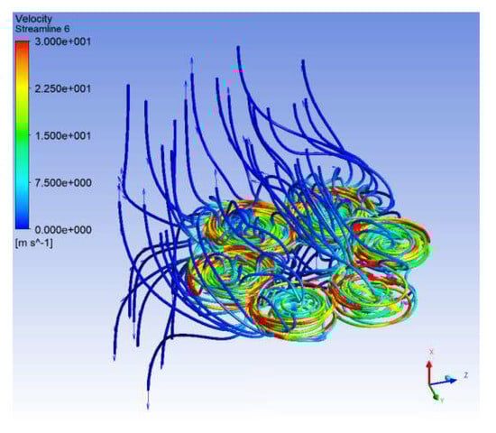 The flow regimes of air streams from the upper to the lower surface at different fixed-point flight altitudes were simulated and analysed by Zheng et al. [86] for plant protection applications. Although the study is substantial, the results are particular to the field of agricultural engineering.