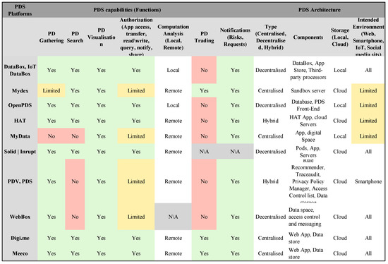 Based on these essential functions, several existing PDS platforms, readily available for individuals to use, are analysed in the subsequent sections.