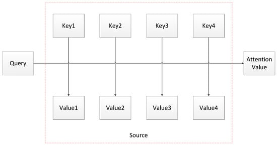 The Self-attention mechanism, known as the internal attention mechanism, was proposed by Google in 2017. In order to better understand the Self-attention mechanism, the schematic diagram is shown in Figure 4. The attention mechanism is essential to calculate the weight of a series of Key-Value pairs in a Query. In the traditional attention mechanism, the Key represents the source element. Value represents the destination element. The output is computed as a weighted sum of the values, where the weight assigned to each value is computed by a compatibility function of the query with the corresponding key. While in the Self-Attention mechanism, the elements represented by Query, Key, and Value are consistent. This method could obtain the relationship between the elements within the sentence and thus catch the internal structure of the sentence.