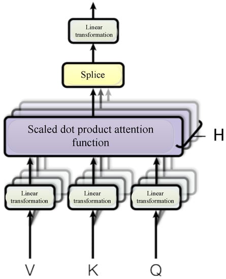 Among them, W i Q , W i K , W i V and W O are parameter matrices. The structure of the Multi-head Self-attention mechanism is shown in Figure 5.
