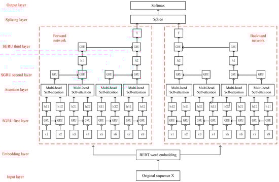 The output sequence S is obtained by the MSA mechanism. And it is the input value of the next layer of the bidirectional SGRU network to obtain the hidden layer state. The calculation formula is as follows: