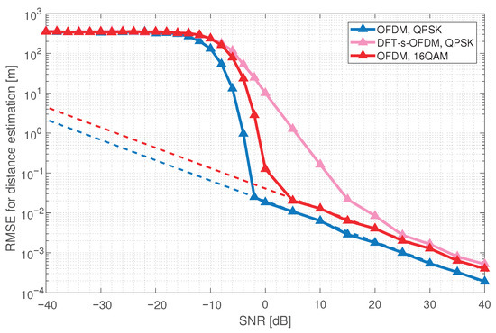 Comparison of the RMSE for distance estimation between OFDM and DFT-s-OFDM.