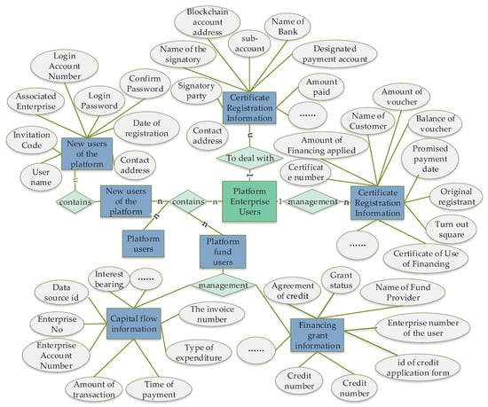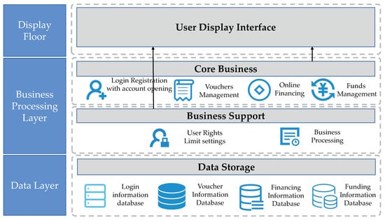 Blockchain technology has outstanding immutable, distributed, secure and decentralized features []. Therefore, blockchain has become the most popular technology in the field of internet finance [,,], and it can be used to establish an internet-based supply chain finance platform to provide information and networks for financial chain businesses. Network-based supply chain business management is realized with the help of information processing technology, which could greatly improve the efficiency of supply chain-related business management [].