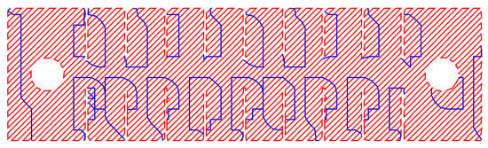 The resulting CAD model was further digitized using an open source scalable vector graphics editor named Inkscape with the Inkstitch extension. During digitization, a 3 mm running stitch at a angle with an underpath was selected to form the sensor, as shown in Figure 5.
