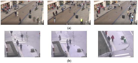 Sample of original frames from the datasets (a) Oxford Town Center and (b) MCT.